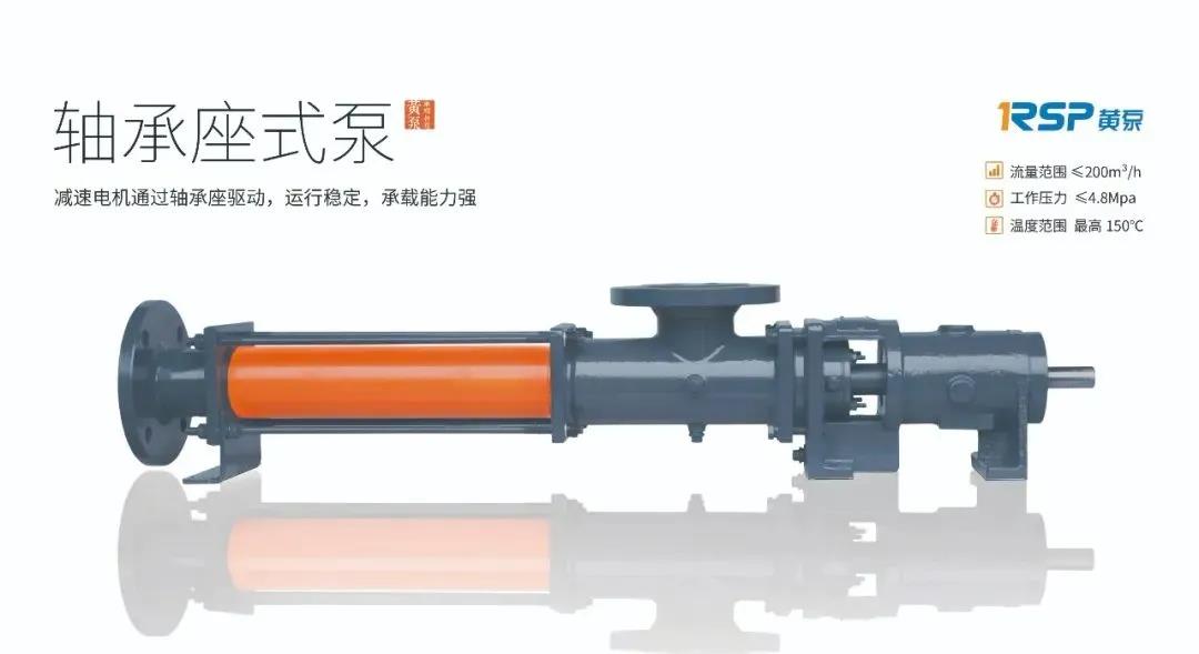 黃泵軸承座式單螺桿泵,減速機或電機通過軸承座驅動,運行穩定,承載能力強,剛性好,維護方便。適合輸送有固體顆粒或纖維,流動性較好或一般的介質。