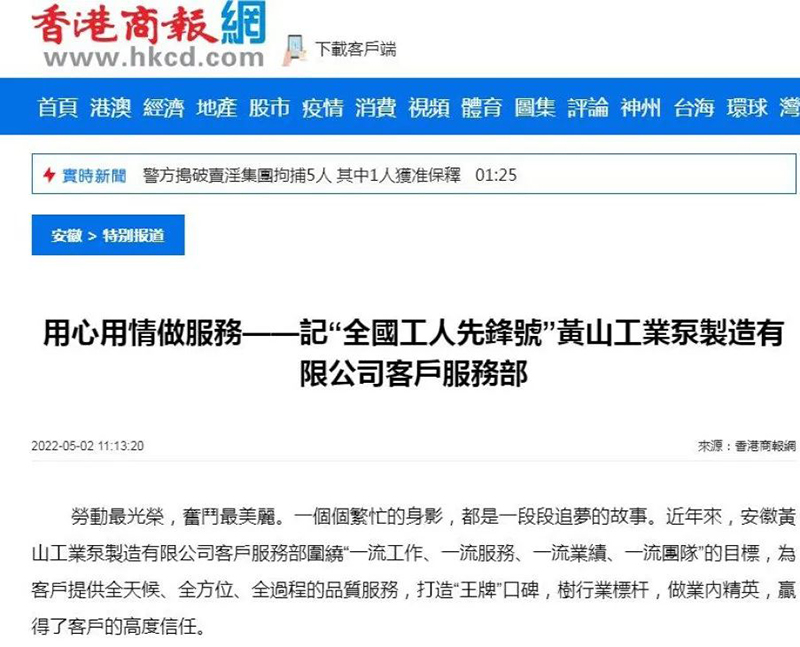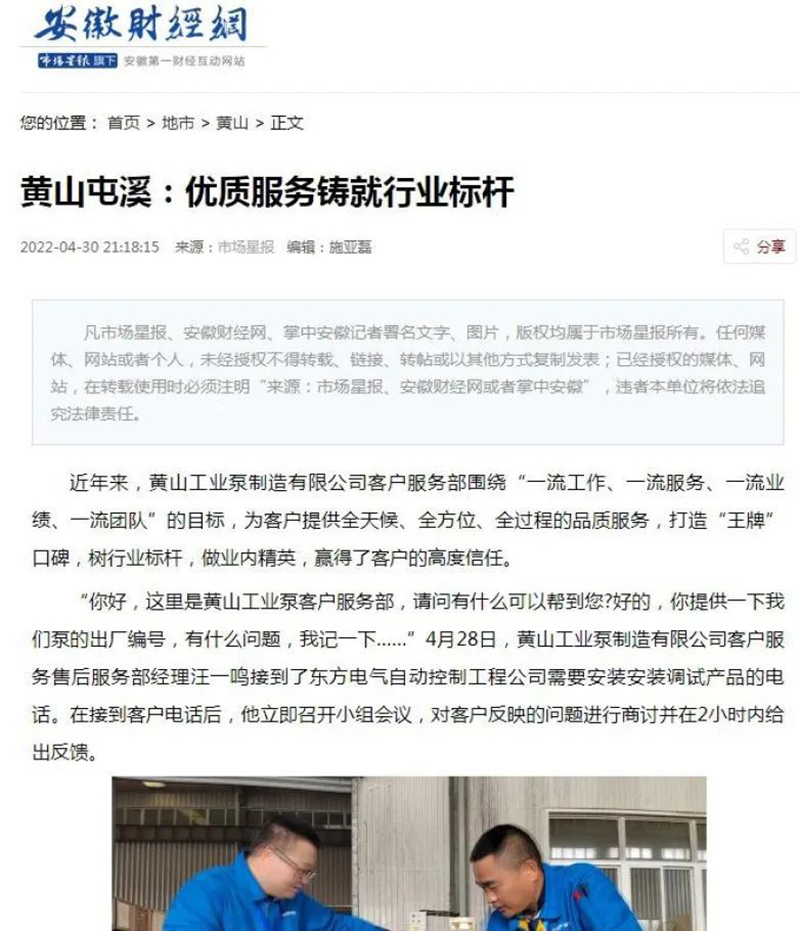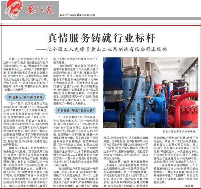 近日,中華全國總工會(以下簡稱“全總”)發布了關于表彰2022年“全國五一勞動獎”和“全國工人先鋒號”的名單,黃山工業泵制造有限公司客戶服務部獲得“全國工人先鋒號”榮譽稱號。