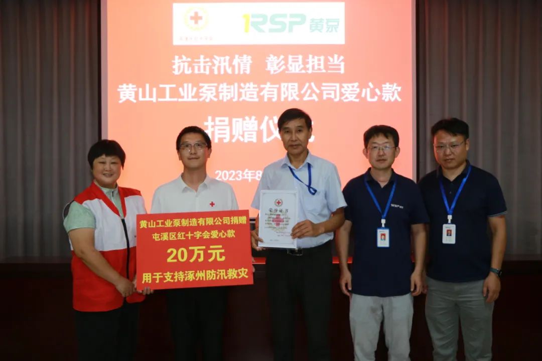 在2023年8月17日這個充滿愛心與責任的日子里,黃山工業泵制造有限公司舉辦了一場莊重而富有意義的捐贈儀式。抗擊汛情,彰顯擔當——在這個特殊的時刻,RSP黃泵以實際行動展現了企業的社會責任感,傳遞了關愛與支持。